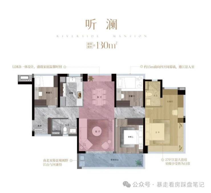 【户型】约130/143/180㎡全南四房,使用率约100%