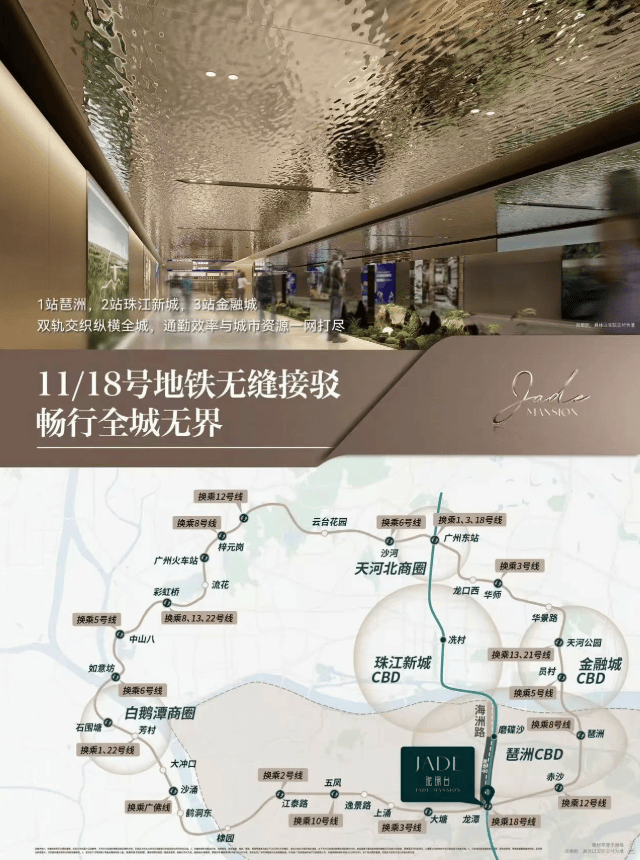 铁11+18号线双轨交汇枢纽(1站琶洲-2站珠江新城-3站金融城)