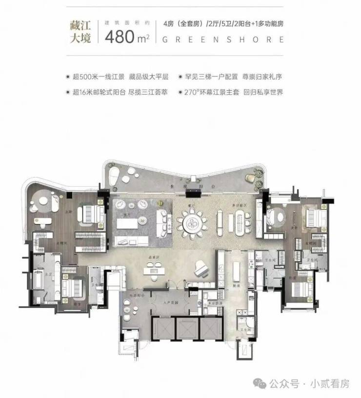 画江为界,跨越时代的岛尖藏品,4套房2厅5卫+1多功能房设计,4.0时代人居范本,重新定义珠江豪宅天花板。