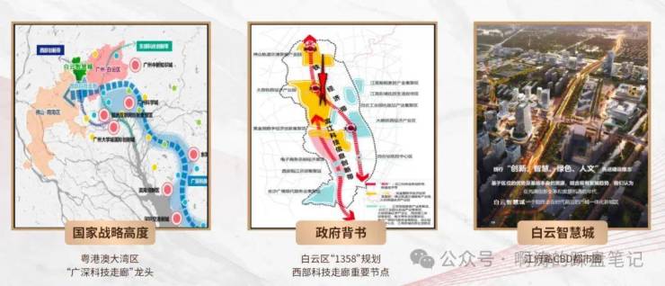 既有“一带一路”国家战略之下,“广深科技走廊”重要节点的国家战略高度,又有白云区“1358”规划,西部科技走廊核心政府背书加持。国家战略是基础,政府背书是催化剂,未来白云智慧城CBD格局已定!