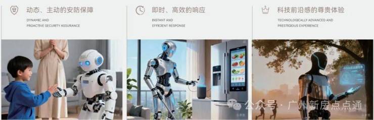 【全场景 机器人服务】AI赋能的各种智能机器人深度融合进香江1号的生活体系中,可以提供动态、主动的安防保障,即时、高效的响应,科技前沿感的尊贵体验。