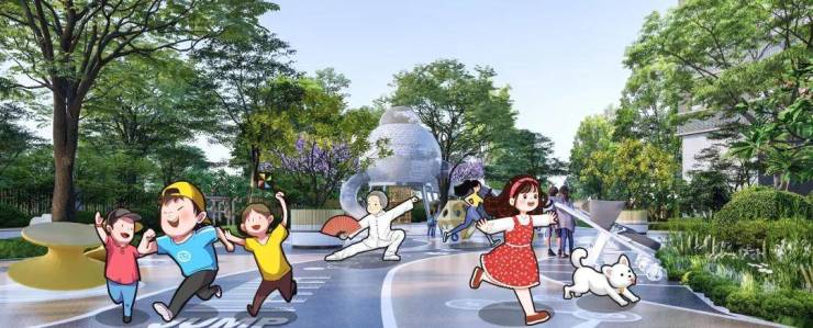 儿童区的游玩滑梯,用于钻爬的甬道悠长奢阔,可以容纳更多小朋友钻、爬、攀,孩子们可以比赛谁爬得快,欢声笑语的同时还能交新朋友。游乐区还设置有椅凳,家长能坐着看顾小朋友玩耍;老人想要练太极或打拳的话,社区内也有宽裕的空间可满足舒展需求。