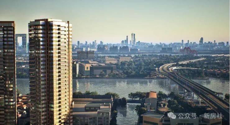保利滨江和著属于北向望江。为了更大限度地望江,楼栋经过一定的旋转,减少各楼栋间的遮挡,拓宽江景视野,从项目到江的距离约150米。