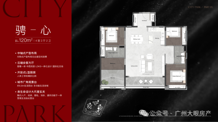 该栋为25层高,两梯三户设计,只有两个面积段,120㎡和140㎡,户型做得不错,在景观展现上用了功,极大程度去放大观江面,比方说超宽阳台、L型主卧转角飘窗、客厅预留观景飘窗等等,主打改善户型,2025年9月整体交房