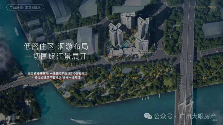 西派粤府采用围合式布局,前后有高度错位,能保障大部分户型能够看到旁边的江景