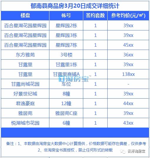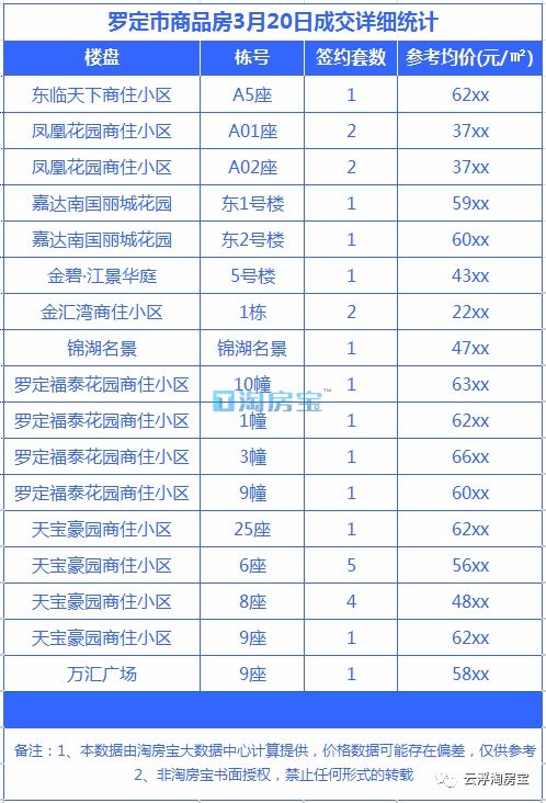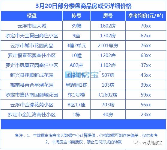 2.以上数据为云浮淘房宝特别搜集整理,未经授权严禁任何形式的转载!
