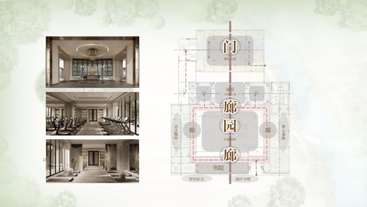 ▸打造“中天门庭”会所空间,通过三重空间序列(门-廊-院)营造礼序归家动线