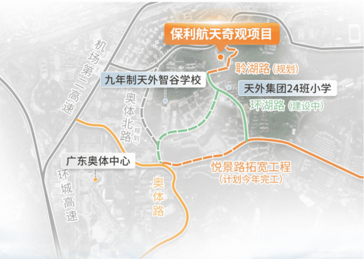 ✔内畅:悦景路升级,规划聆湖路、环湖路(西侧已基本完工)加速兑现,畅联世界大观,实现板块资源共享(数据来源:天河区人民政府)