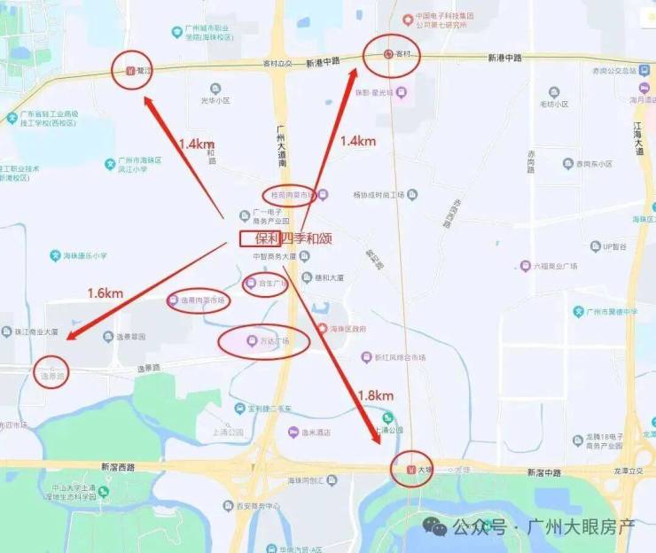 项目位于广州的新中轴线内,广州新中轴是广州发展的“大动脉”,天河北-珠江新城CBD中轴两端土地已发展饱和,顺应“南拓”发展趋势,未来的发展重心将落到海珠。