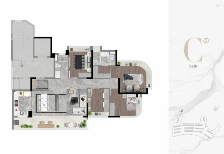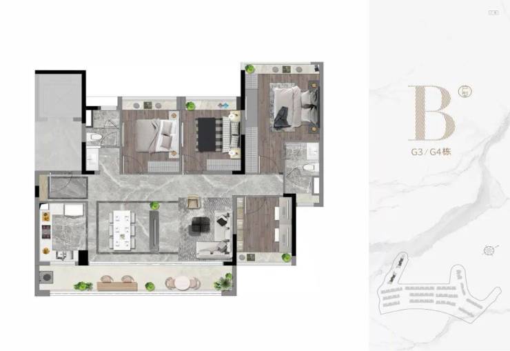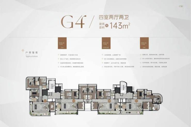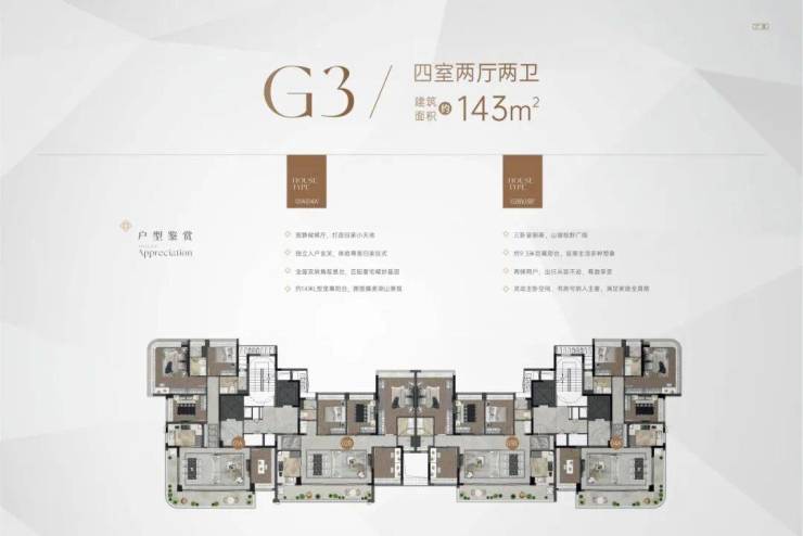 大平层G4栋143㎡四房两卫、两梯两户板楼设计。17层小高层半山洋房,目前清盘限时特惠!