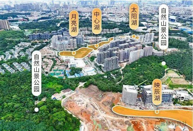 片区及周边拥有丰富的山水资源,是天河东部重要的绿色开敞空间。水系包括中心湖、太阳湖、月亮湖和映辰湖等4个人工湖,周边被钟岭、横岭、大山等自然山体环绕。其他的景观也非常不错,毕竟周边的绿化都非常突出,容积率低、安静、绿化率高,周边配套也慢慢成熟,非常宜居。
