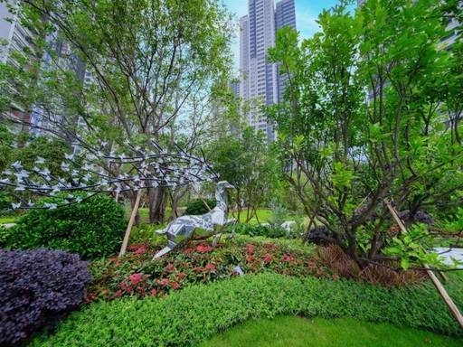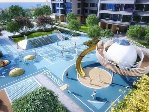 社区打造约 18 万㎡沉浸式立体园林(含线性公园),规划儿童探索乐园、长者康养空间、中央泳池、5 公里健康跑道等全龄空间。约 82 米宽阔楼间距,保障每户采光与视野俱佳。
