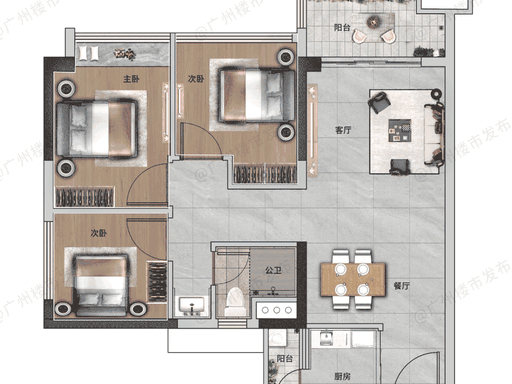 70-72㎡ 三房:低总价入主主城,刚需首选,全明格局,采光优异。
