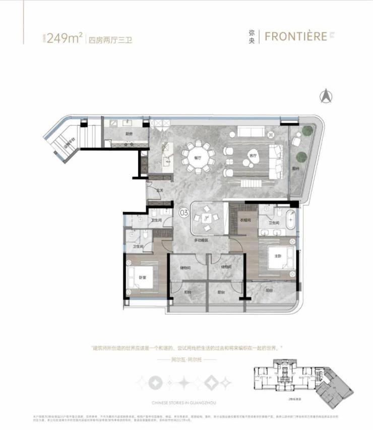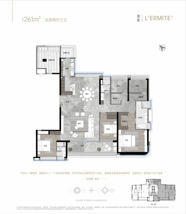 琶洲樾华樾的户型从225平方米至329平方米不等,均为大户型设计,主力户型为建面约255㎡和约329㎡。