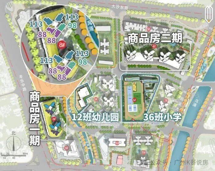 自身配建一所12班幼儿园,一所36班小学,初中依靠周边现有配套。
