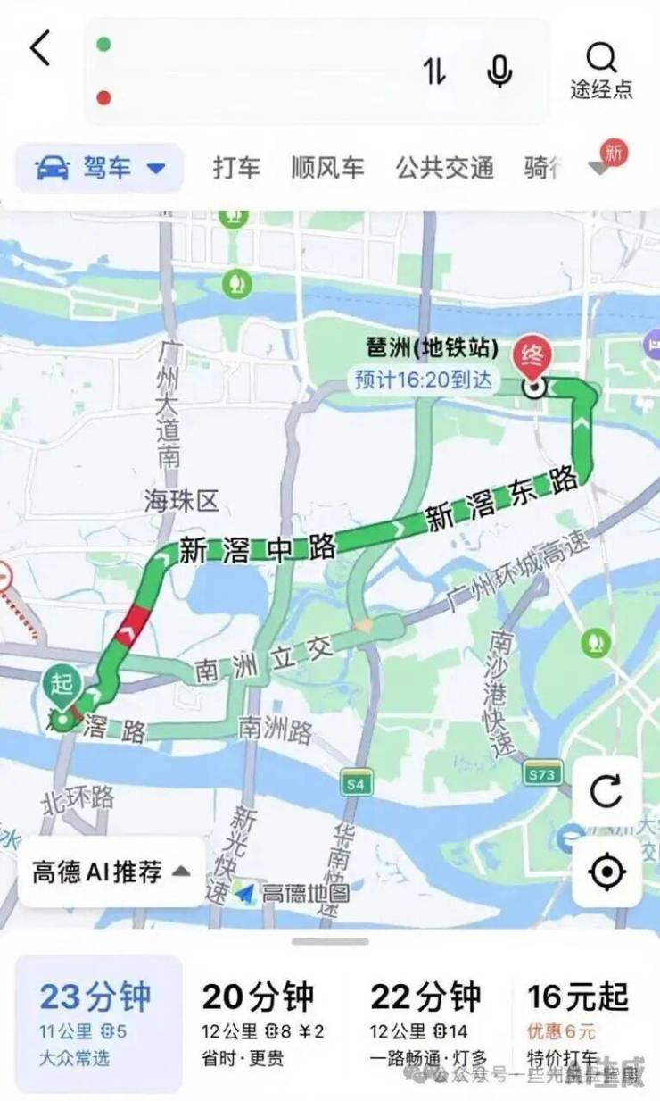 到琶洲:经南洲路-新滘西路,约15公里/25分钟;