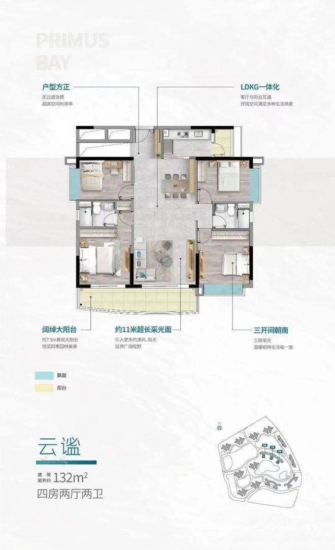 餐客厅约7m大面宽,约6m宽幕阳台,主卧套房设计