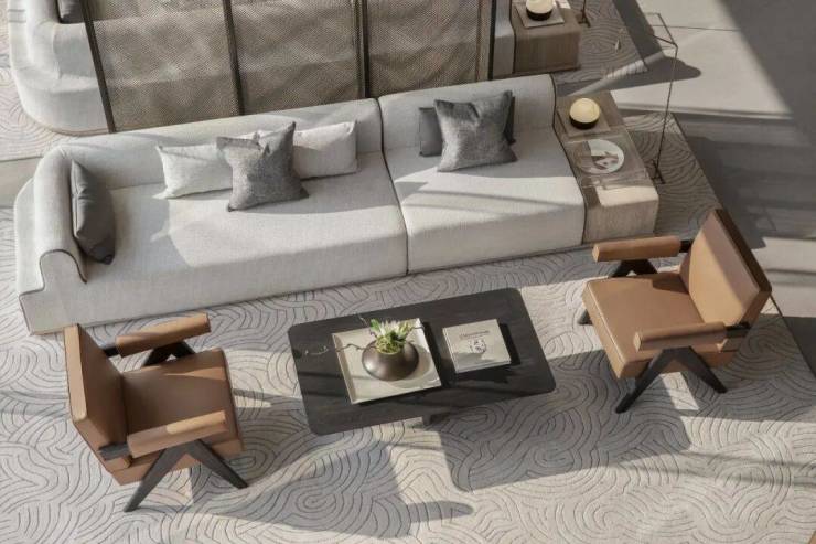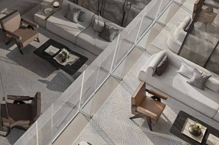 地毯將片片祥雲嵌入其中,借祥雲入境與自然色調的整體態勢相契合,優雅的古典元素與富有靈氣的現代藝術,彼此互動。