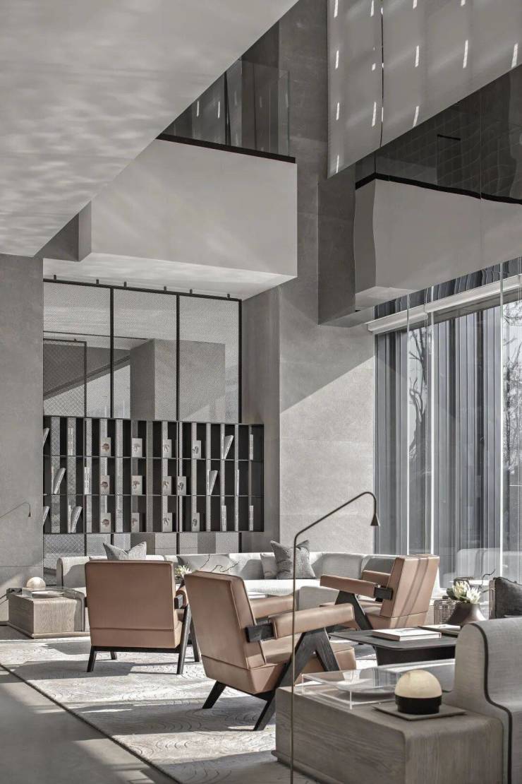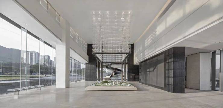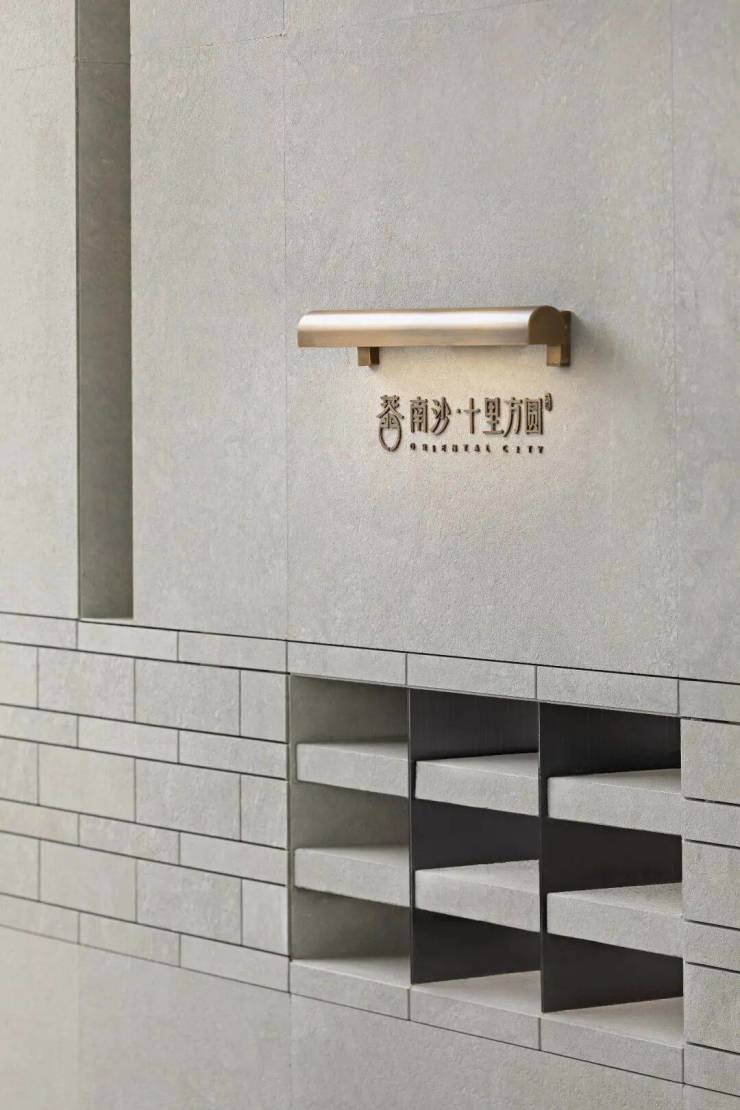 設計希望在前廳空間裏融入匠心的細節陳列,將廣州的市井人文嵌入進空間的始末。接待前廳以灰色系為主調,彰顯空間的質感與藝術感,拋光球體與水晶方形的純色鏡面雕塑,不斷去解析並回應項目LOGO。