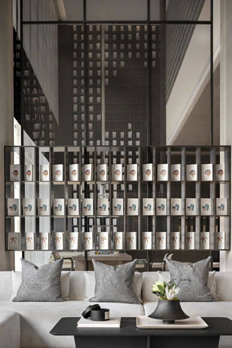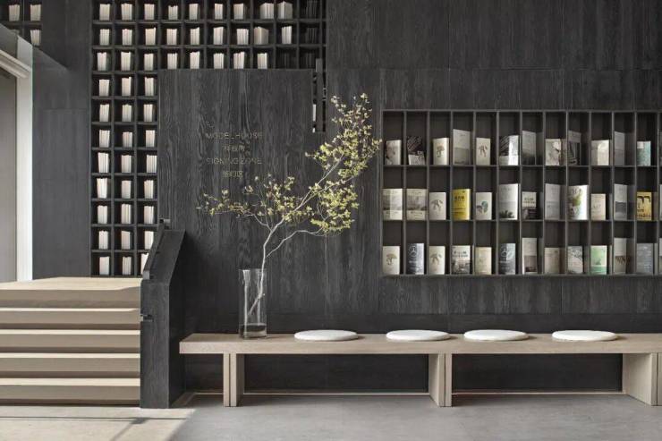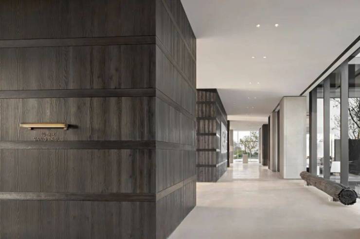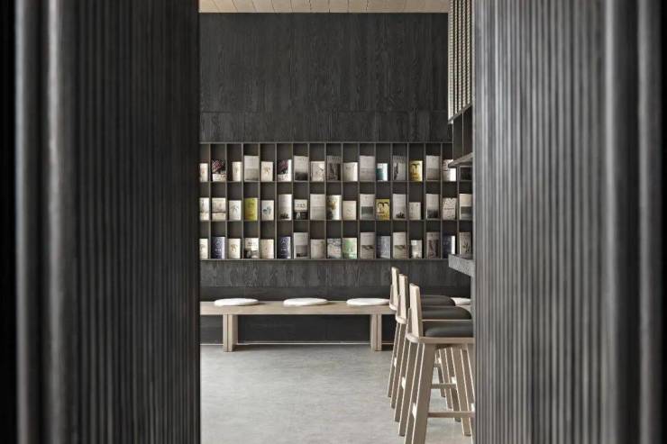 為了避免過廳的無趣,設計首次搭載鉑金材質與碳化木設置長凳,以新舊材料的映襯對比,實現材料的再生與可持續使用。
