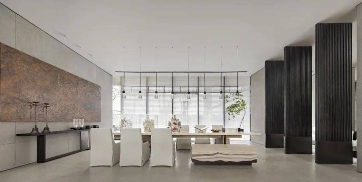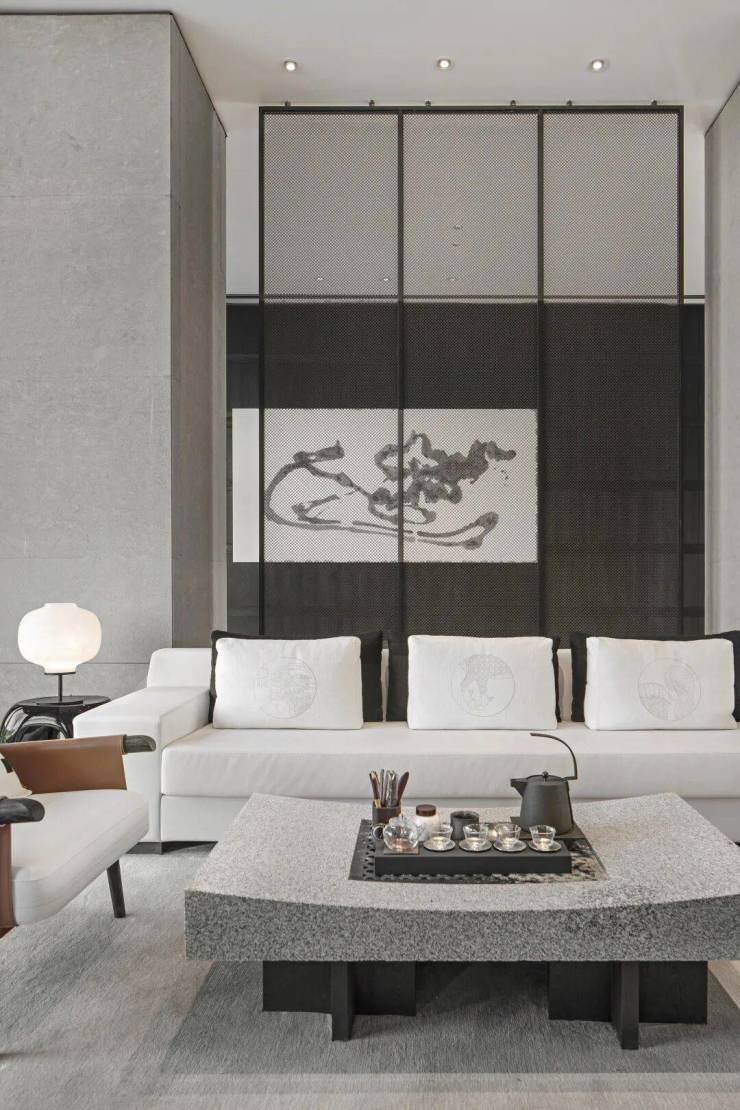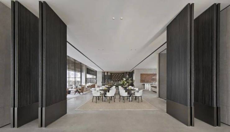 高挑空與半開扇的設計手法,形成齊整開闊的空間設計,適度降低空間給予人的壓迫感,柔和的分區設置也讓空間層次呈現出更加立體化的效果。