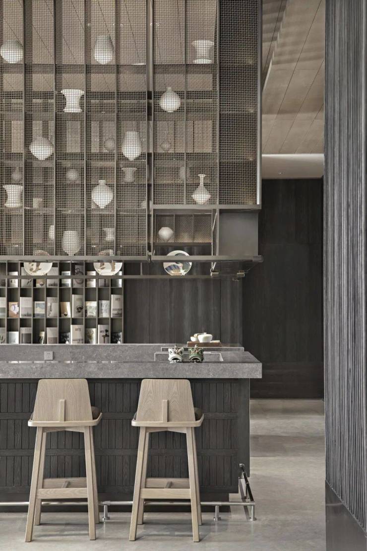 VIP區的石桌以船體浮現動態,杯盞茗品置於其中,在金屬網格中勾勒出麒麟躍動,這種精心佈置處處跟隨設計大邏輯。