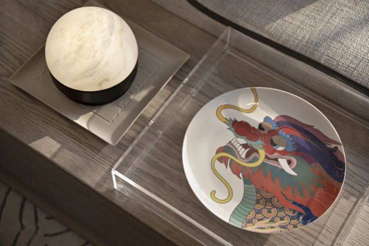 藝術家的定制畫作——尋鱗之眼,墨筆繪就的麒麟,神遊於牆壁之上,成為空間裏的點睛之作。