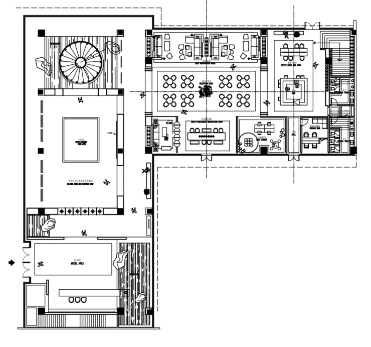 洽談桌提取地方麻石築基的特徵,運用到空間的家私上,是一種對文化的“延續傳承”。
