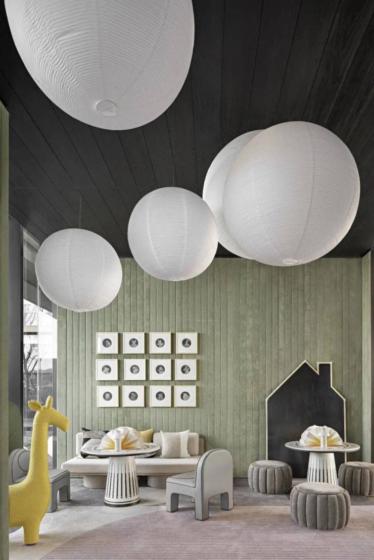 兒童區,在以手工感的製作滿足孩童童趣的基礎上,同樣希望可以發揮其中的教育意義,牆面佈置一排十二生肖,用以提高兒童對傳統屬相的認知。