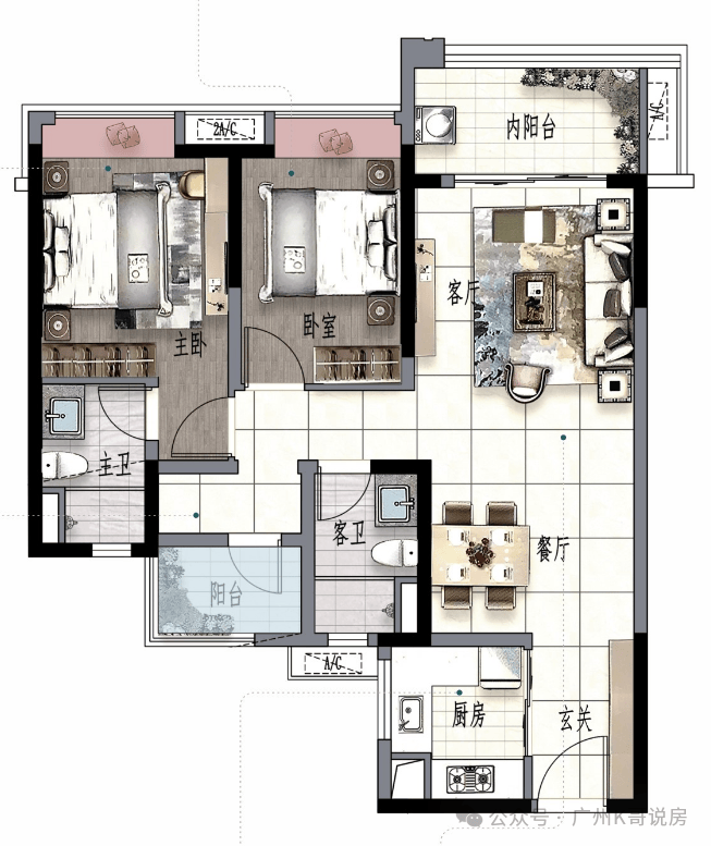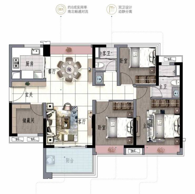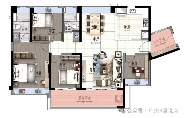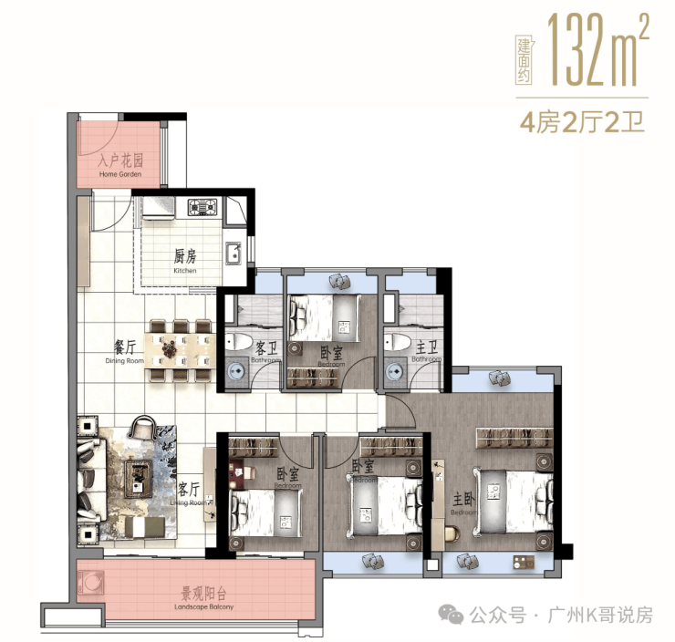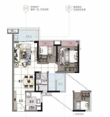 景观大阳台连通次卧--双套房设计,三代同堂更从容