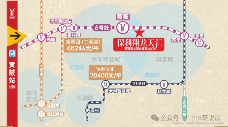 保利翔龙天汇作为科学城和智慧城交汇处,与天河一路之隔,优越的区位选址,让项目可同享天河智慧城与科学城双城的发展利好。