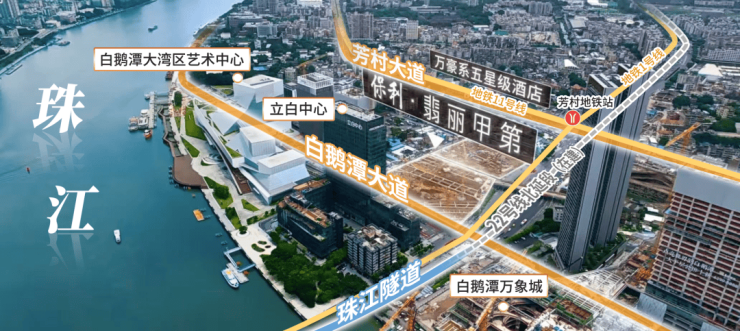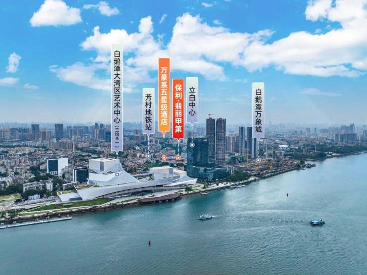 白鹅潭大湾区艺术中心就在楼下,广州首座M1级万象城,广州首个重奢滨江太古里也在项目附近。