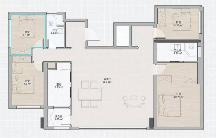 133㎡大平层,四叶草+横厅设计在广州独一无二,客厅甚至不需要打通,就能实现约7.4米大宽厅,媲美170㎡大平层。