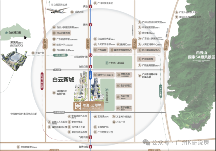 项目紧邻广州儿童中心、白云国际会议中心等六大省市级地标建筑,南航三大总部、无限极总部、地铁设计院总院等总部大楼环绕在旁,共同构筑了一个高端、商务、国际化的生活圈层。