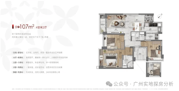 整个项目只有6栋楼,建面约76-89㎡爆款三房、约98-108㎡性价比之王四房、约126-139㎡江景大平层。