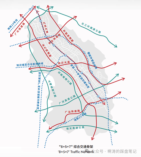 🎢花莞高速无缝接驳城芯干道,约30分钟直达珠江新城,快速通达全城规划8⃣条轨道5⃣条高速7⃣条快速路,多维立体交通,打造湾区1小时生活圈🚇8条轨道地铁14号线、地铁14号线知识城支线、地铁21号线、新白广城际线(在建)、白云机场联络线(规划中)、37号线(规划中)、广中珠澳线(规划中)、广河高铁(规划中)、有轨电车5号线(规划中)🚘 5条高速公路广河高速、花莞高速、北三环高速、从埔高速、增天高速🚗7条城市快速公路永九快速路、九佛快速路、智慧大道、知识大道、广汕快速路、广从快速路、知识城至生物岛快速路