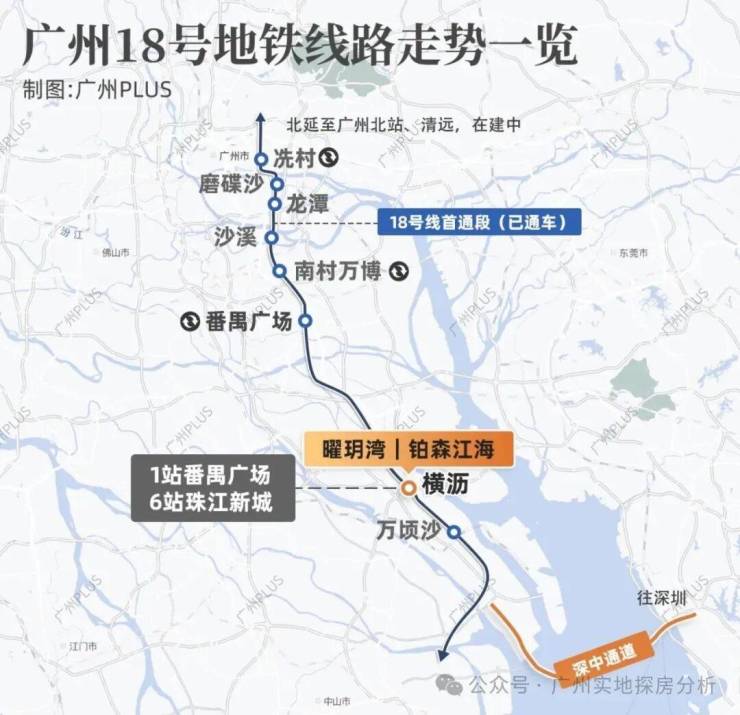 项目距离地铁18号线横沥站约1公里。1站番禺广场,6站珠江新城。