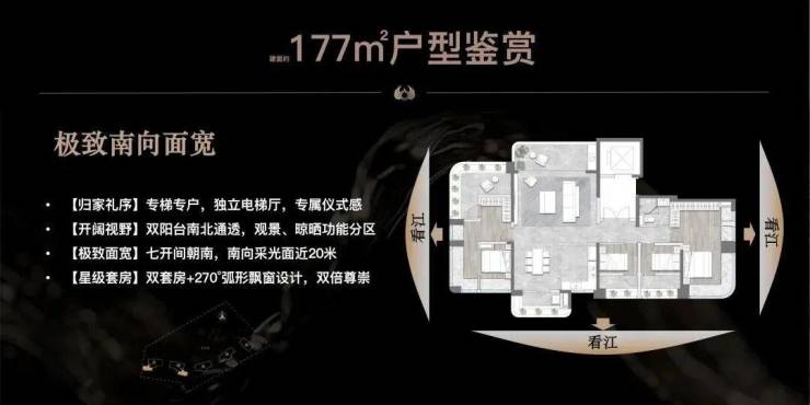 为了实现最大的观江延展面,住宅以龙型布局环抱港湾,能达到IMAX环幕瞰江的视野。