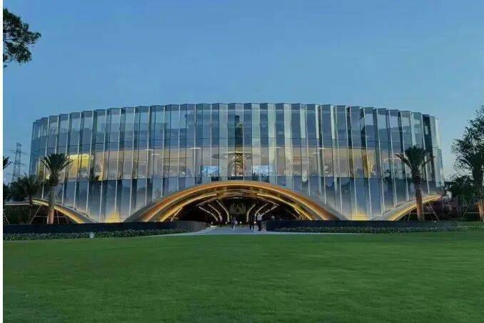 开放的营销中心,玻璃幕墙+弧形线条的售楼部,更像是个艺术藏馆,未来将成为业主们的滨江会所。
