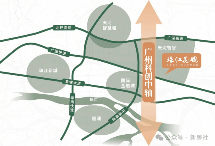 珠江花城占位城市高价值板块——天河智谷,坐拥智谷强规划发展利好,助力片区高端人才生活品质升级。珠江新城、国际金融城、天河智慧城相伴在侧,驾车约20分钟便可以到达天河各大商务板块,享受近距离通勤和休闲的便捷,创新潮流生活方式。于此第三中轴之上,土地价值凸显,未来潜力巨大。