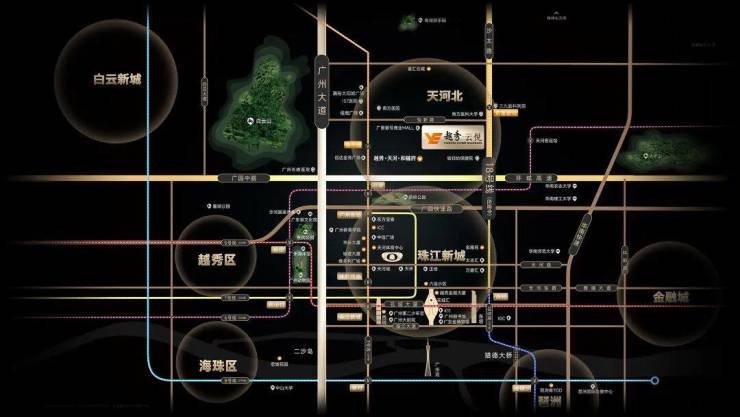 越秀·云悦所在的区域位于广州城市中轴之上,距离珠江新城直线距离约5公里。该区域不仅是广州的核心地段,也是未来的重点发展区域之一。项目周边有成熟的二手小区,环境优美,适合居住。同时,随着18号线和3号线的开通,区域内的交通便利性将进一步提升,带动周边配套设施的完善和发展。