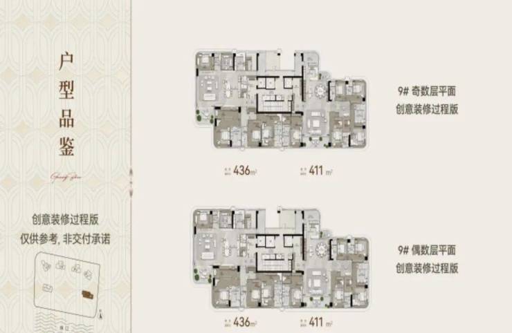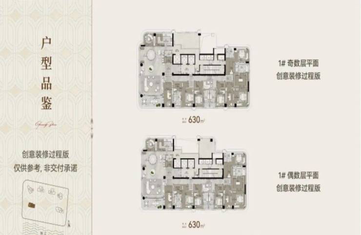 主推205-630㎡超大面积户型,使用率130%,户户南向一线望江