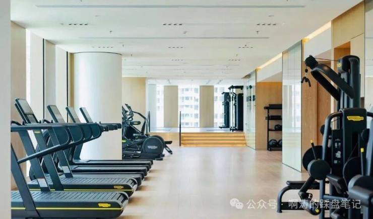 5.业主可以享用晓庐凯悦臻选酒店的水疗、健身中心、恒温泳池等设施,还拥有专属的私人行政酒廊 Club Mio,健身中心按照国际标准划分了力量训练区、有氧区、瑜伽房和拉伸区