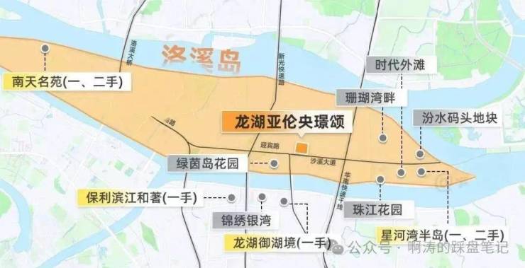 另一方面,地块所在的洛溪岛高端改善氛围浓厚,聚集了不少老牌豪宅。如星河湾半岛、南天名苑等等,加上洛溪片区已近20年没有新增宅地,项目入市后,将作为片区内首个容积率新规产品,产品层面在片区内基本没有对手。