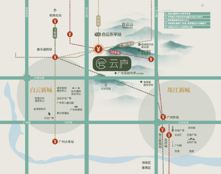 时速在160公里的高速地铁线,在全国也仅开通了三条,云庐所在的白云东平站。正是这18号线高速地铁所在,作为跨市域地铁线,通达广州,更可畅行大湾区。