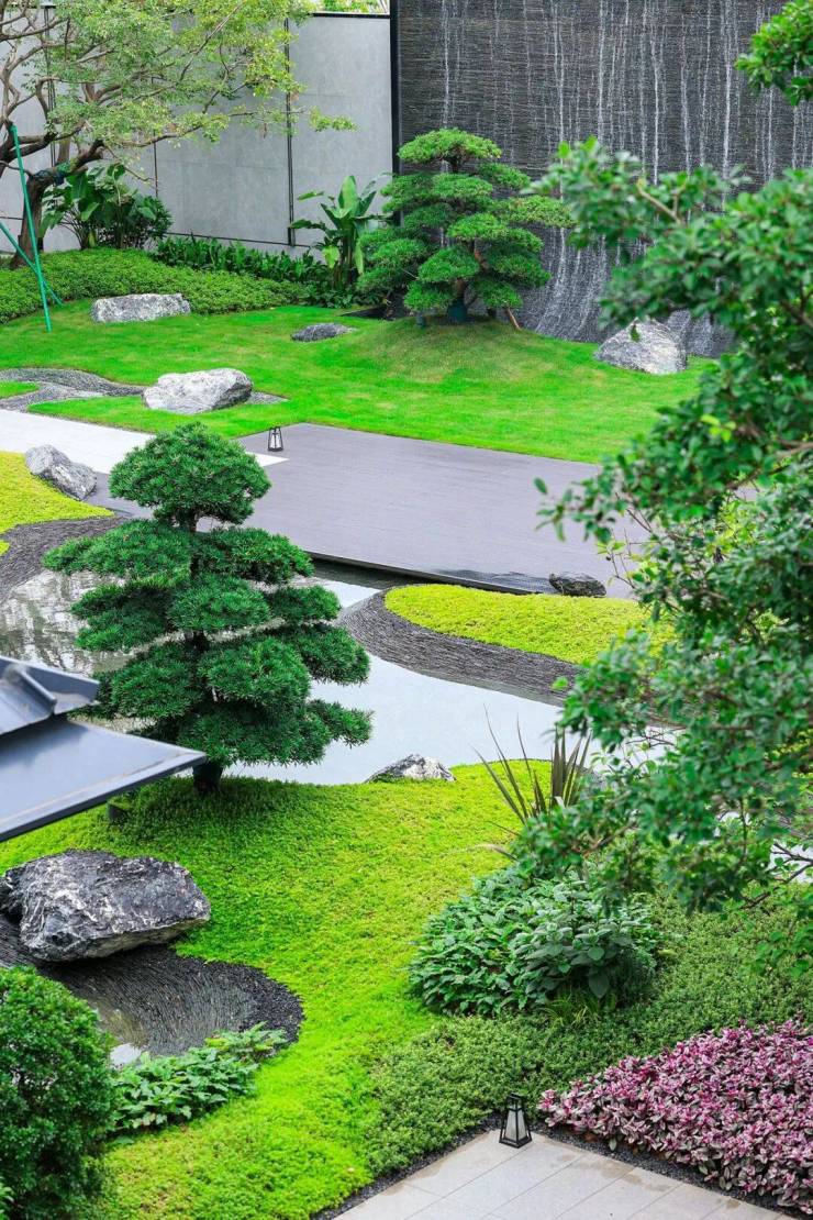 项目园林以“一轴九苑”的布局打造,人行主入口两侧为礼仪中轴和艺术水景。与云山互为呼应,园内设有林泉会客厅、休闲平台、阳光草坪、露营剧场、儿童游乐园等。为社区全年龄段的业主提供会客社交、休闲娱乐、邻里交流等各种的需求。