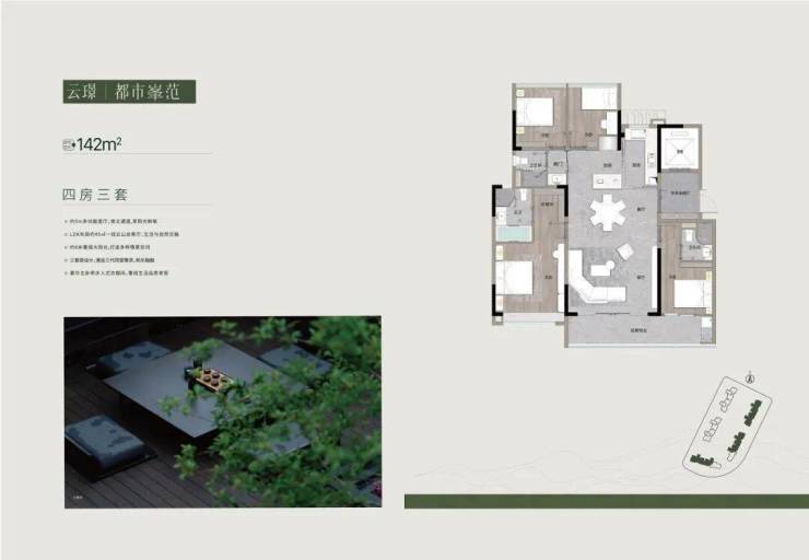 2. 142㎡,四房三卫户型