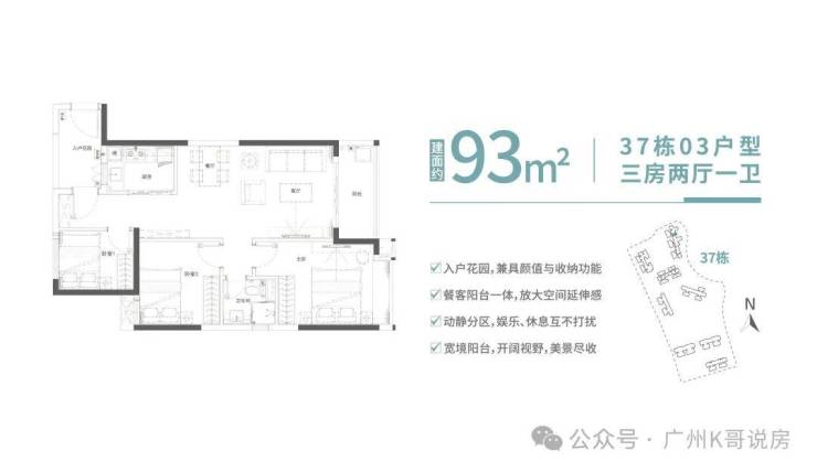 此次广地花园·观灏,面积段80-107悦景三房,多面采景,三面望水,通透采光,充分利用户型的每一寸肌理,以有限的生活空间焕发更多生活灵感,打造全方位人性化居所。