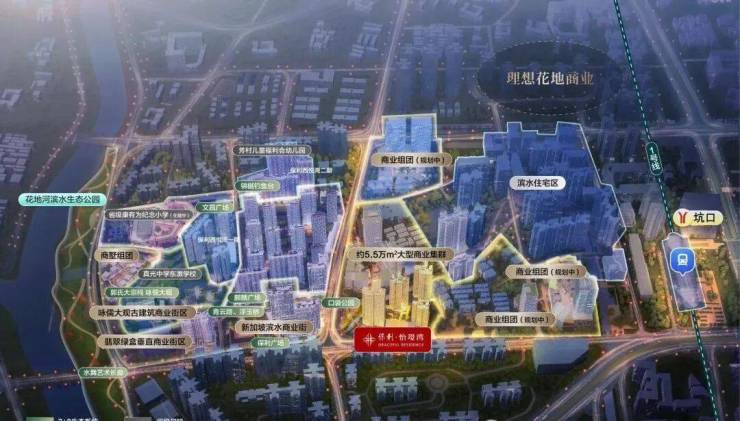 项目自身规划约40万㎡四大滨水商业街区,约700米处万科规划有18万㎡的理想花地商业,周边现有的有芳和荟购物广场,荔胜广百等商圈。