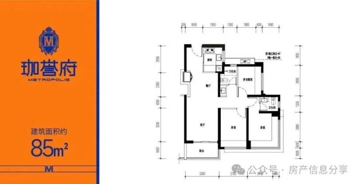 | 约85㎡(横厅)三房两厅两卫【总价约415-455万】